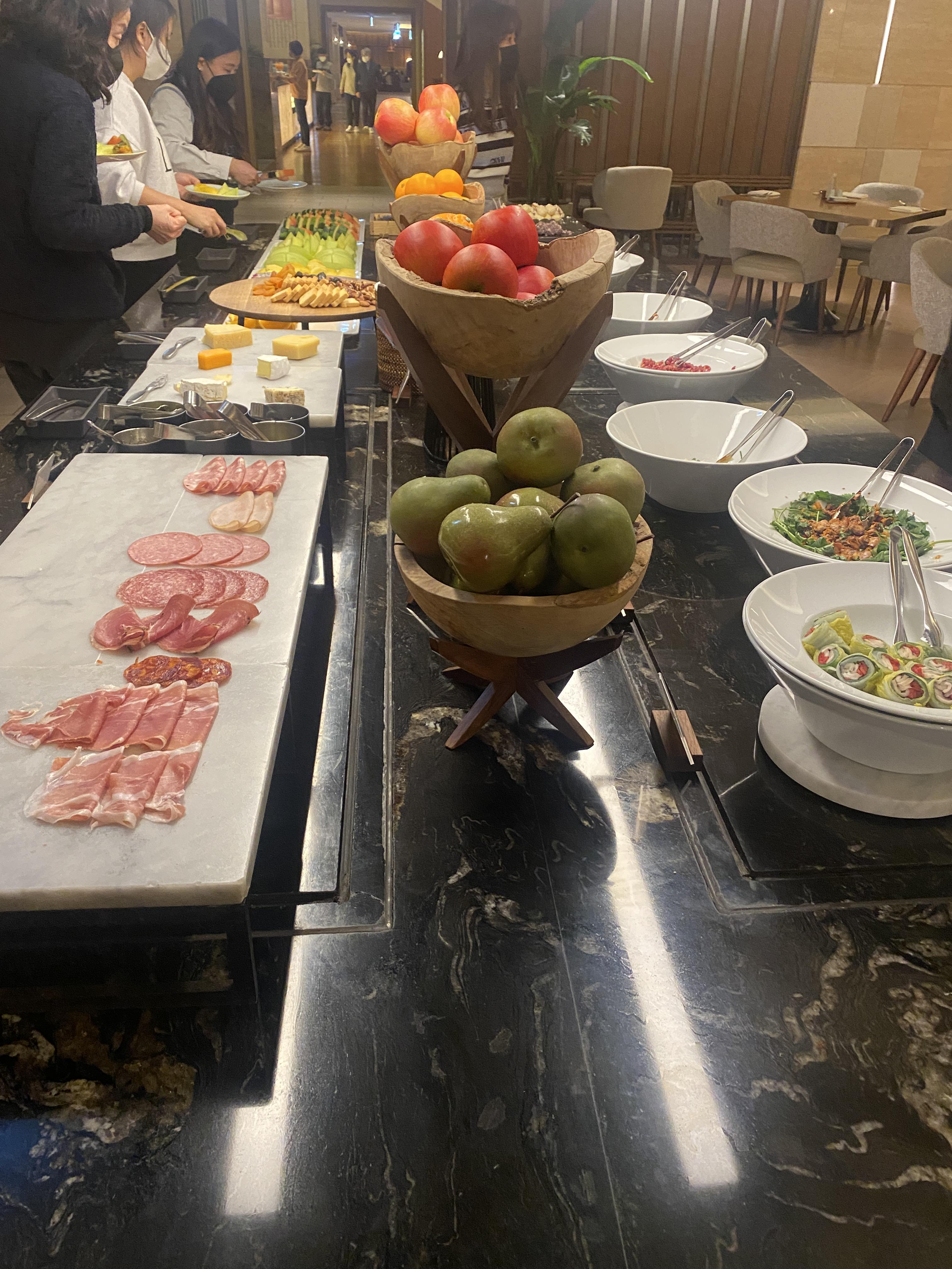 입구 정면에 보이는 곳이 디저트 바인데요 여길 기점으로 왼쪽은 차가운 음식 (해산물, 회, 과일, 샐러드.. 등) 이 있고