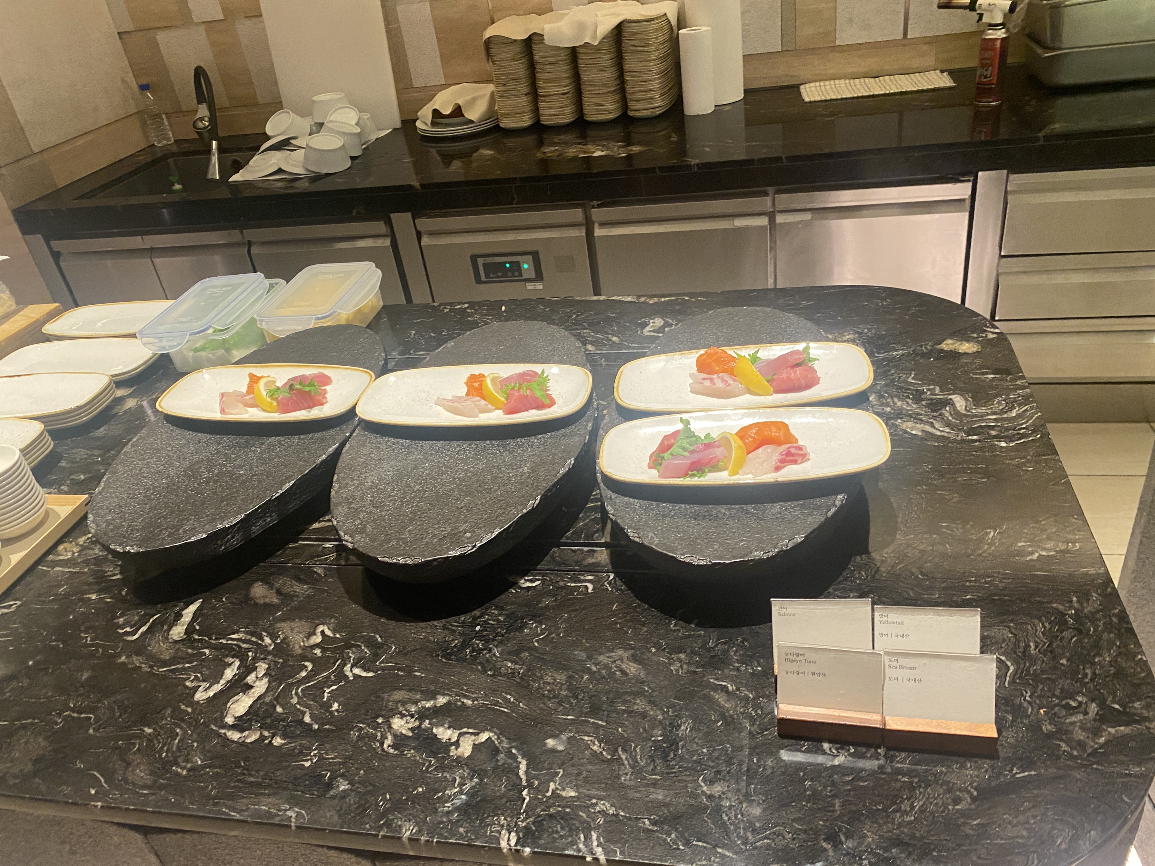 지난번에 왔을 땐 저희 따듯한 음식 쪽으로 안내해 주셨는데 이번엔 차가운 음식 쪽으로 안내해 주시더라고요.