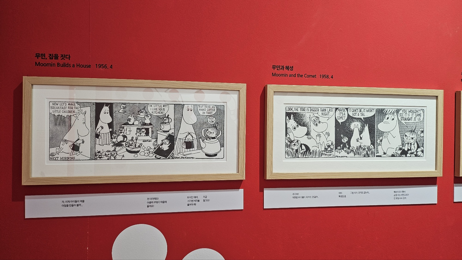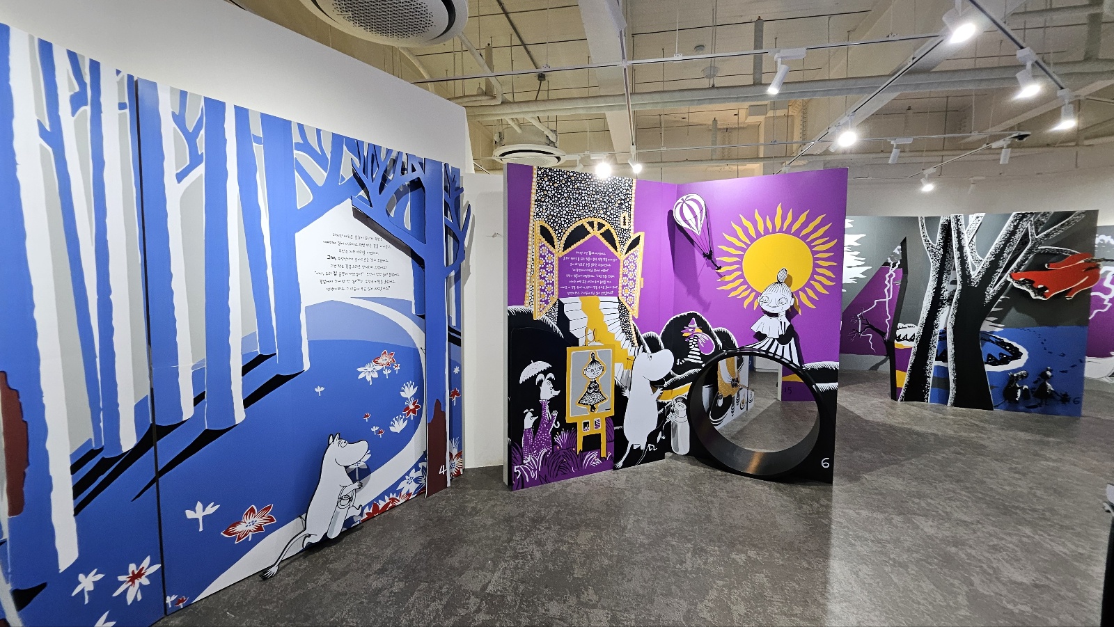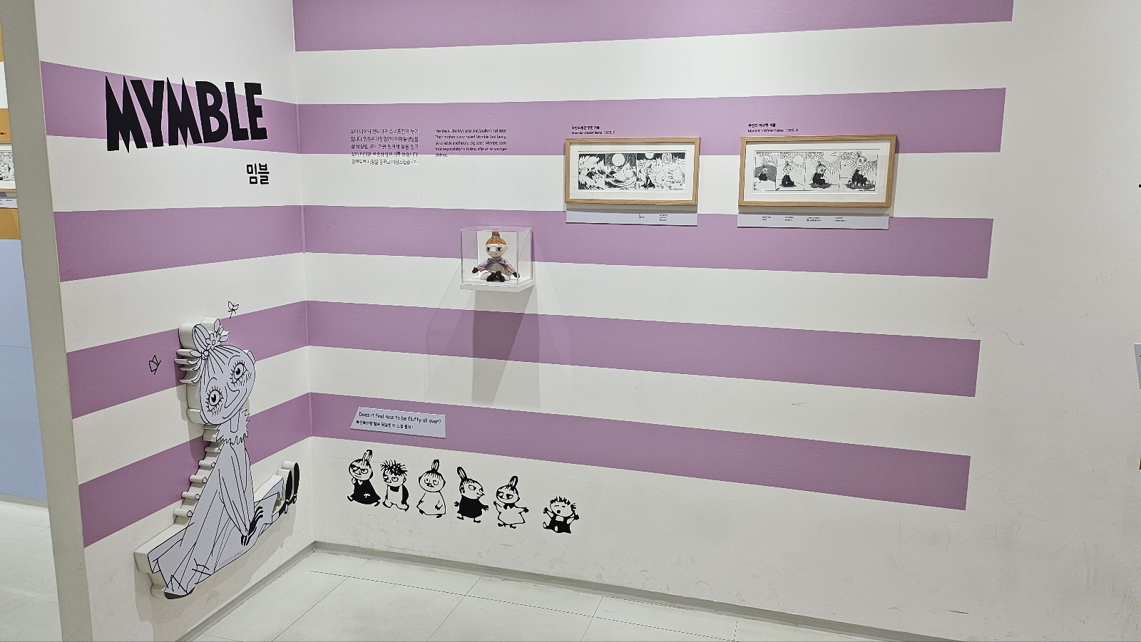 1층에는 그림과 영상들로 무민의 역사와 캐릭터들의 특징을 알수있는 내용들이 볼 수 있어요