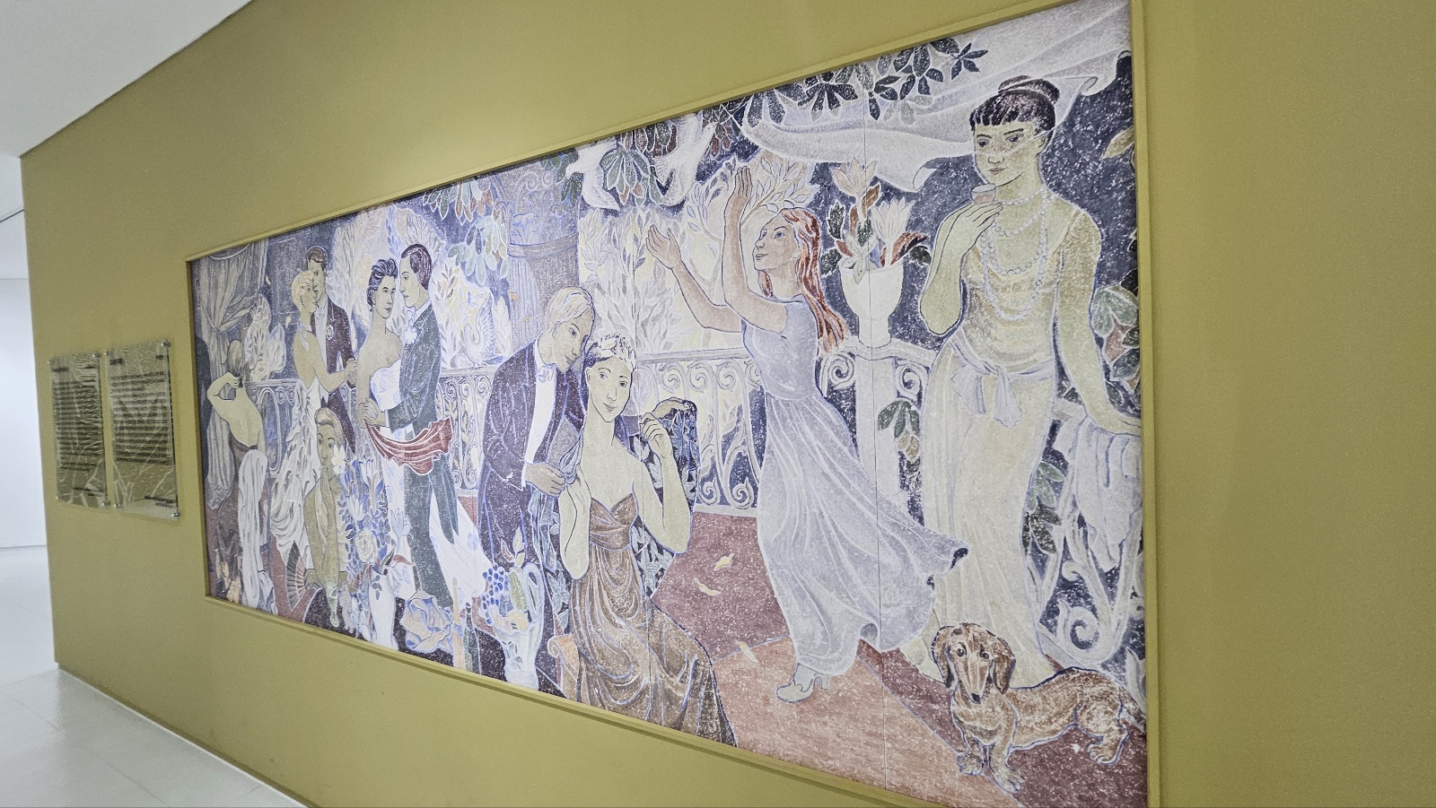 알록달록 영상으로 만들어진 바닥과 예쁘게 꾸며진 복도를 볼 수 있어요