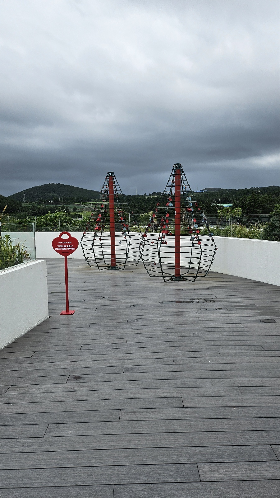 야외 테라스 ? 옥상도 있는데 거기서 사진 한 장 찍기 좋더라고요 높아서 주변 풍경도 잘 보이고.. 저흰 비가 와서