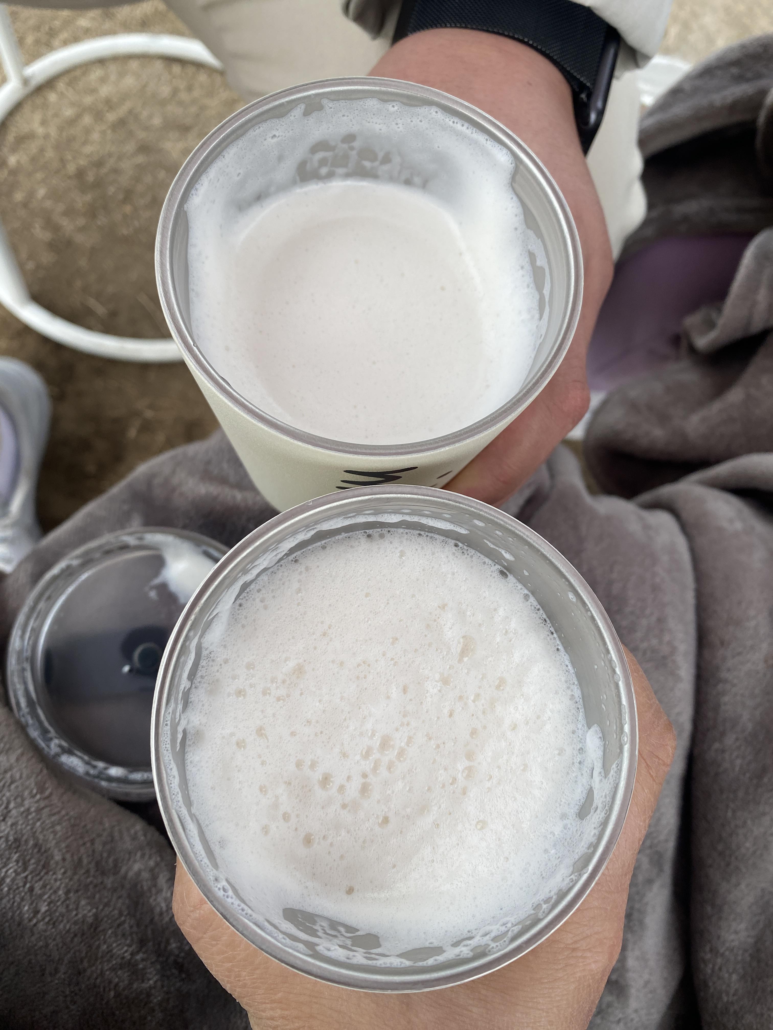 바람 피할 수 있게 돼있어서 저희도 이곳에 들어가 마셨습니다. 매장에 무릎 담요도 마련되 있어서 챙겨가서 덥었어요.