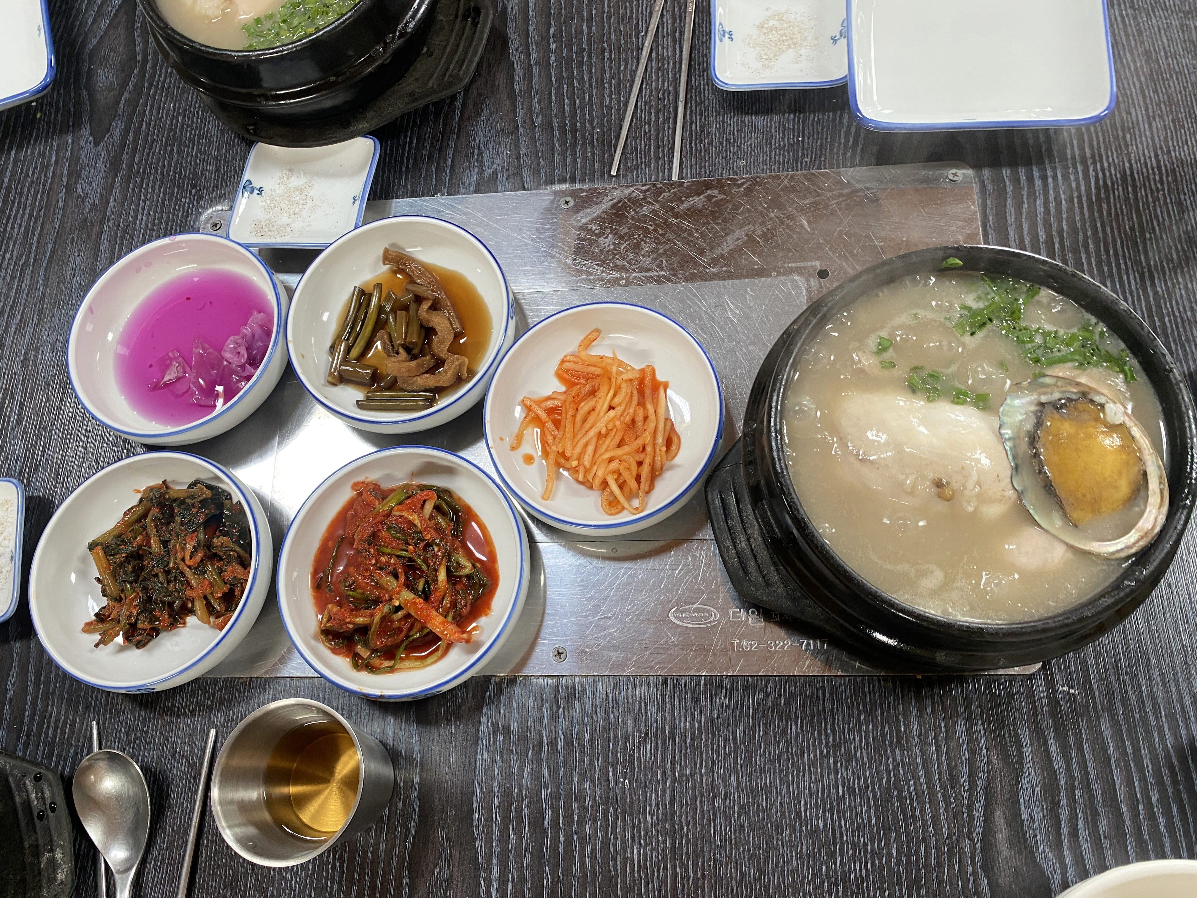 전복이 큼직한 게 똬~!! 삼계탕 닭도 너무 부들부들 잘 삶아져 있고 전복도 역시나 맛있었어요