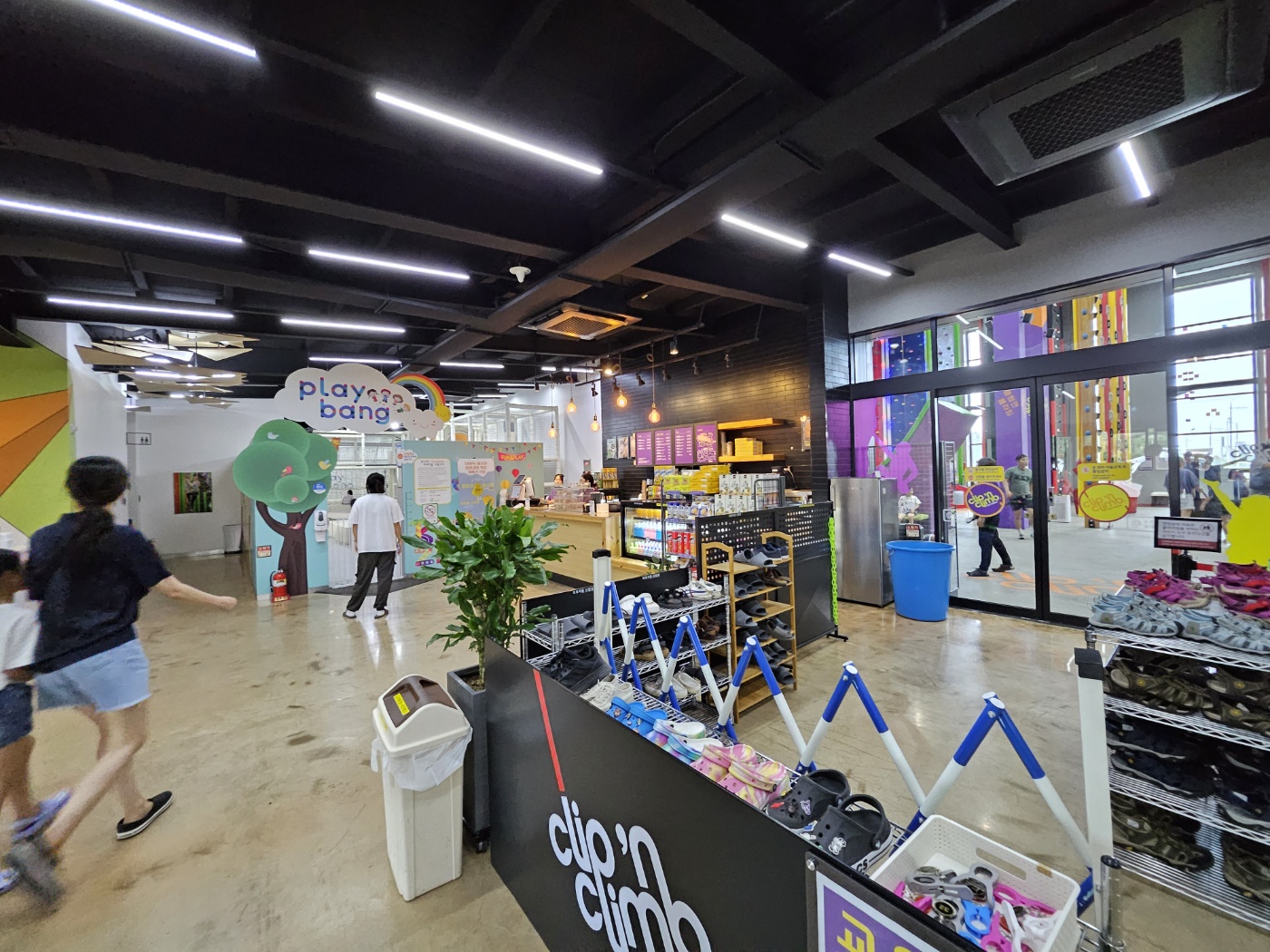 작지만 카페도 있어 앉아서 차도 마실 수 있습니다. 카페 옆으로는 작은 키즈 카페도 있는데 클라이밍이나 카트를 타지 못하는 어린아이들은 다른 형제들 클라이밍 카트 탈동안 놀 수 있는 공간도 있어요