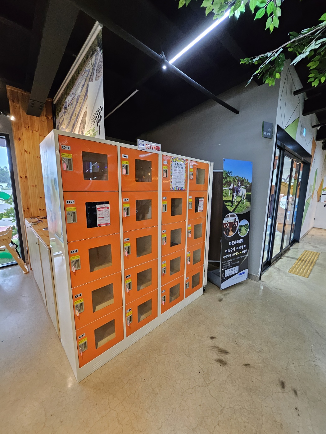 클라이밍 하는 당사자는 가방이나 물건 등을 가지고 있으면 불편하기 때문에 클라임장 건너편에 물품 보관함을 무료로 사용 할수 있습니다. 저는 지갑 가방은 다 넣어 두고 아이 사진 찍어 주려고 핸드폰만 가지고 들어갔어요. 키 꽂혀 있는 것은 열려 있어서 물건 넣고 키 뽑아서 가지고 계시다가 나올 때 꺼내면 돼요.