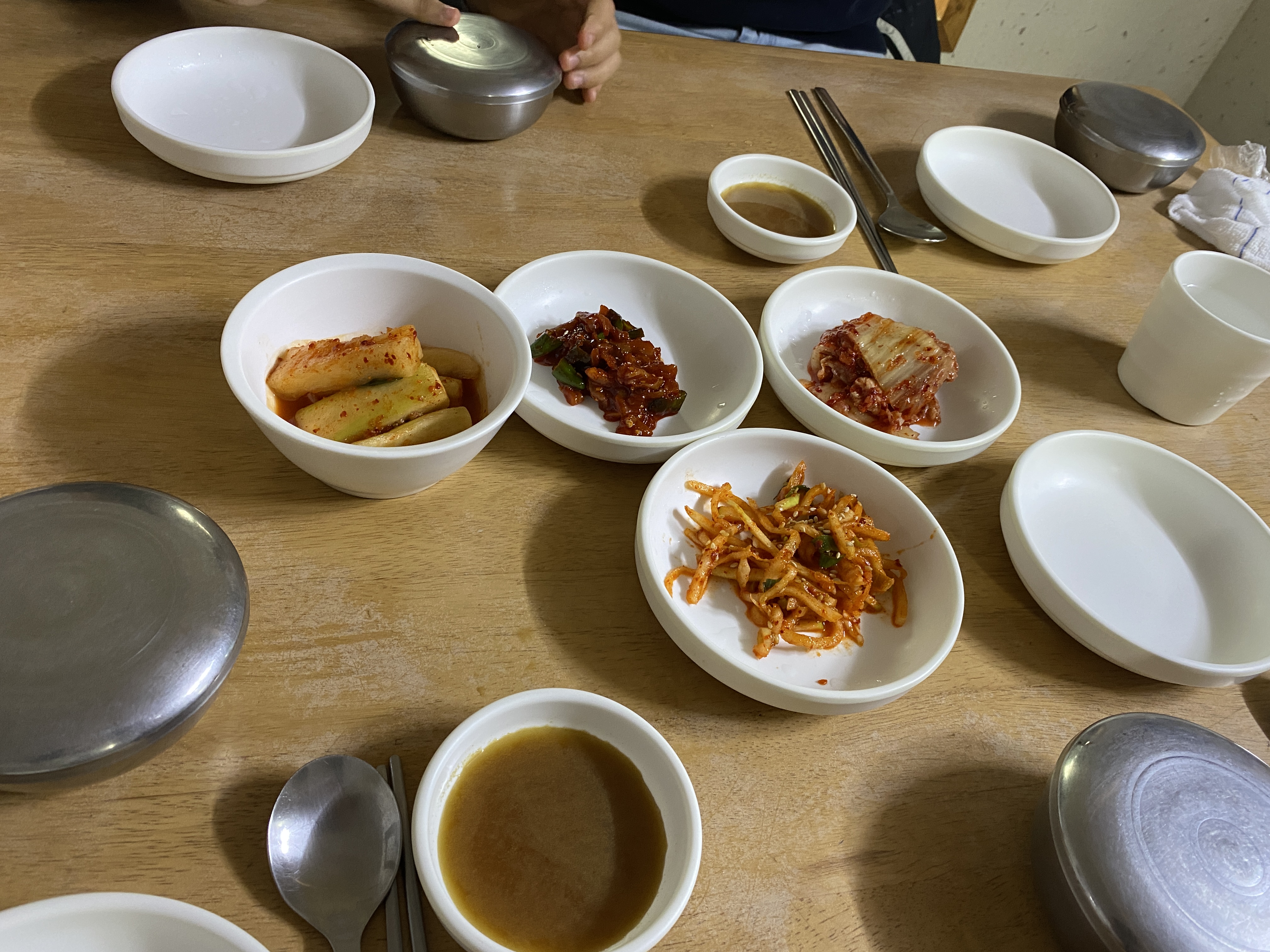 반찬은 깍뚜기, 오징어젓, 김치, 무생체가 나왔고 깍두기는 액젓 맛이 많이 났지만 아이들은 좋아했어요.