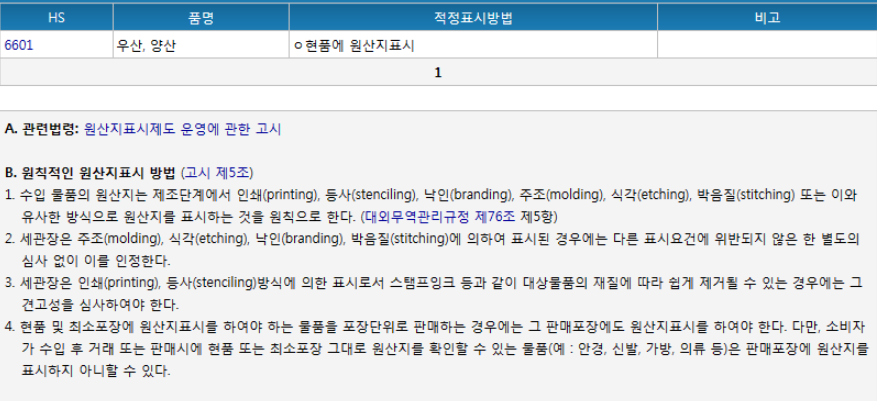 우산도 마찬가지로 수입을 위해서는 필수로 원산지를 표기해야 합니다.