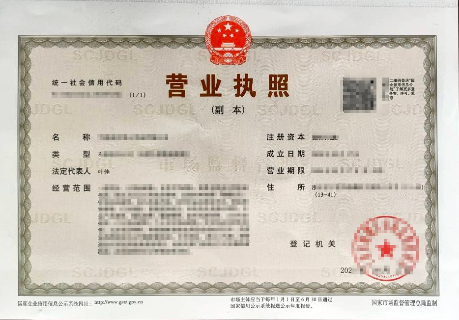 1. 중국 제조 영업 집죠 (사업자등록증 )